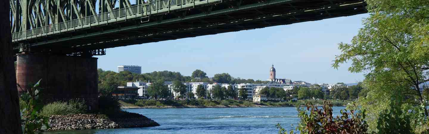 Diese besondere Stadtwanderung führt uns fast immer am Wasser entlang. Wir überqueren drei große und ein paar kleinere Brücken, wechseln dabei zwischen zwei Bundesländern und zwei Landeshauptstädten und können zuschauen, wie der gar nicht so kleine Main im mächtigen Rhein verschwindet.